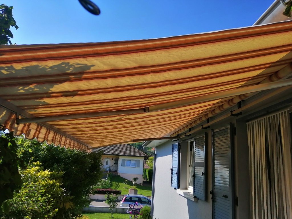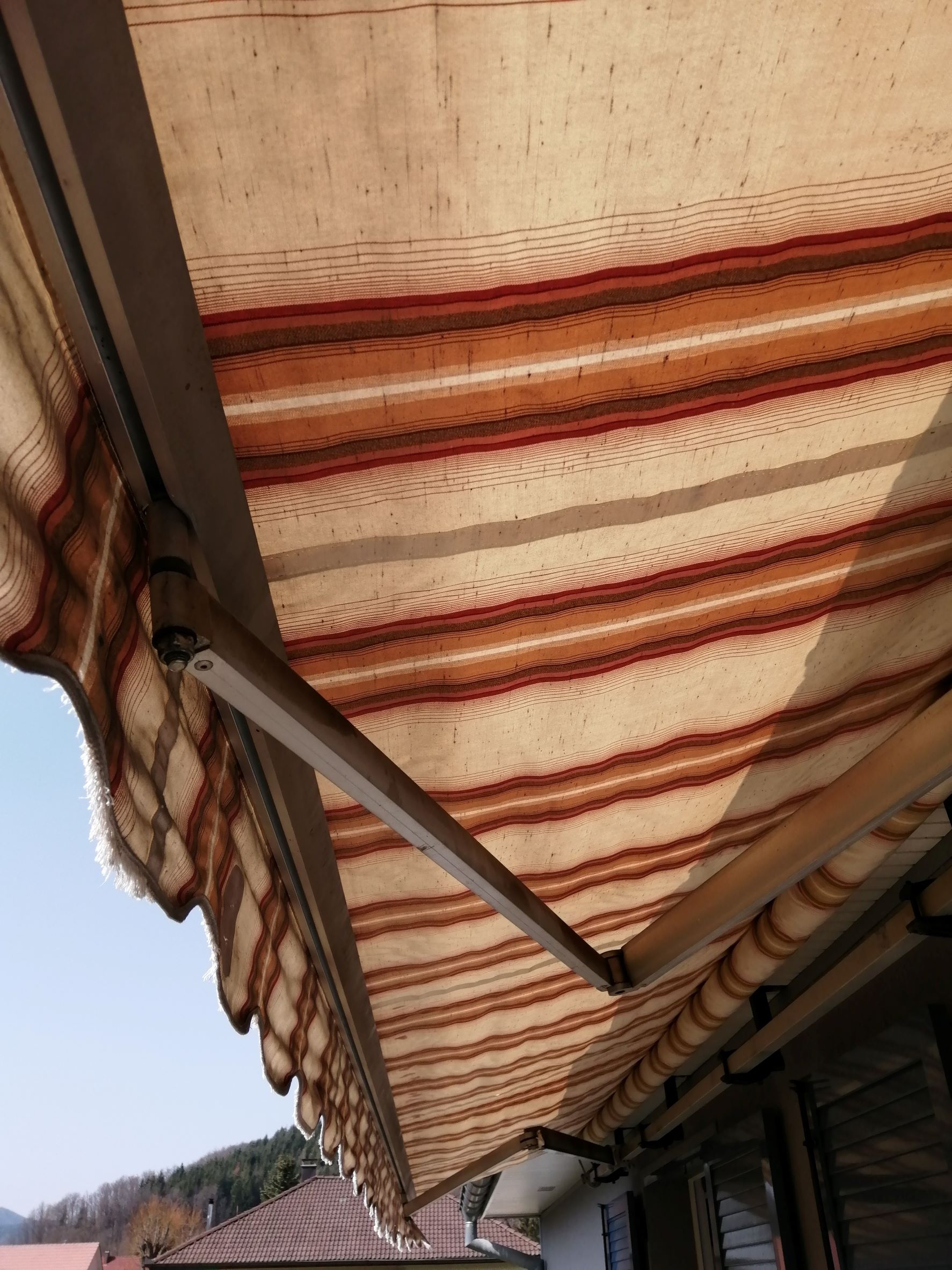 Bon c'est vrai , la toile est bien défraichie, je vais voir si je peux aussi la changer moi même, mais pour l'instant avec le retour du soleil, il nous protège et c'est l'essentiel.