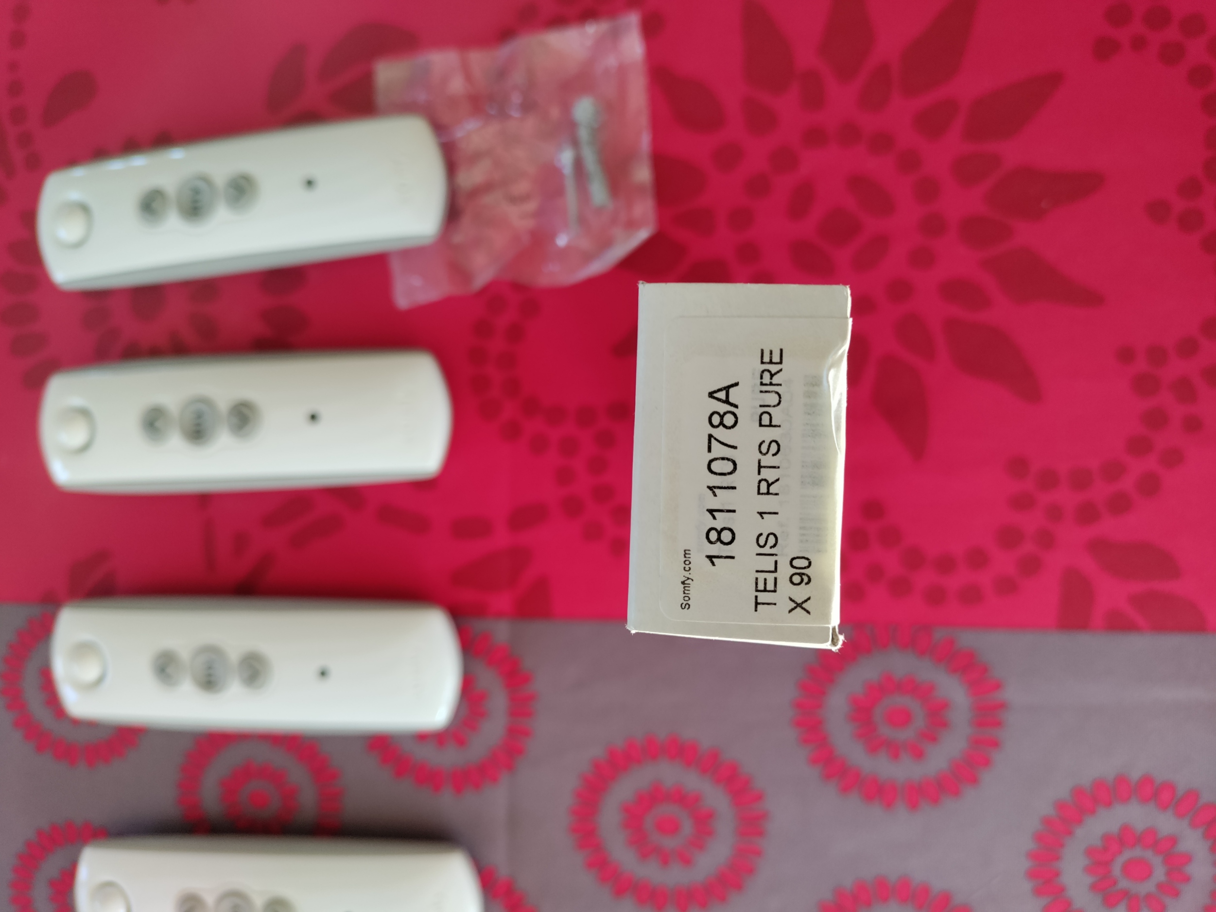 Je viens d'installer des volets solaire et j'ai en ma possession mes anciennes télécommande RTS pure Télis 1 ( 4 pièces) ainsi qu'une Télis 4, toutes fonctionnent et son avec leurs notices et système de fixation, 30€ les télis 1 et 50 la télis 4.
