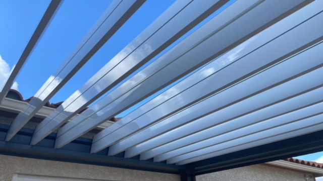 - lames qui se chevauchent dès lors qu'il ya eu du vent et que la pergola se ferme seule par le capteur de pluie.