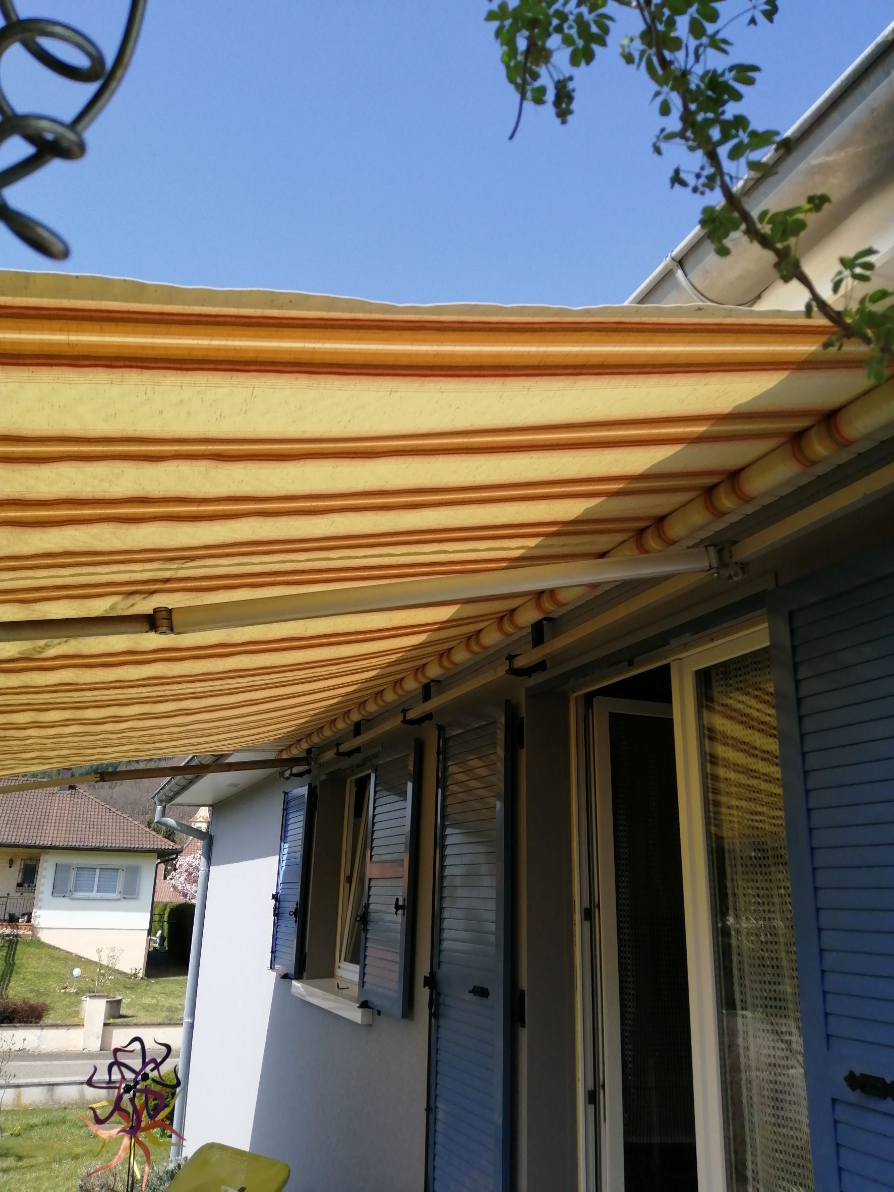 Bon c'est vrai , la toile est bien défraichie, je vais voir si je peux aussi la changer moi même, mais pour l'instant avec le retour du soleil, il nous protège et c'est l'essentiel.