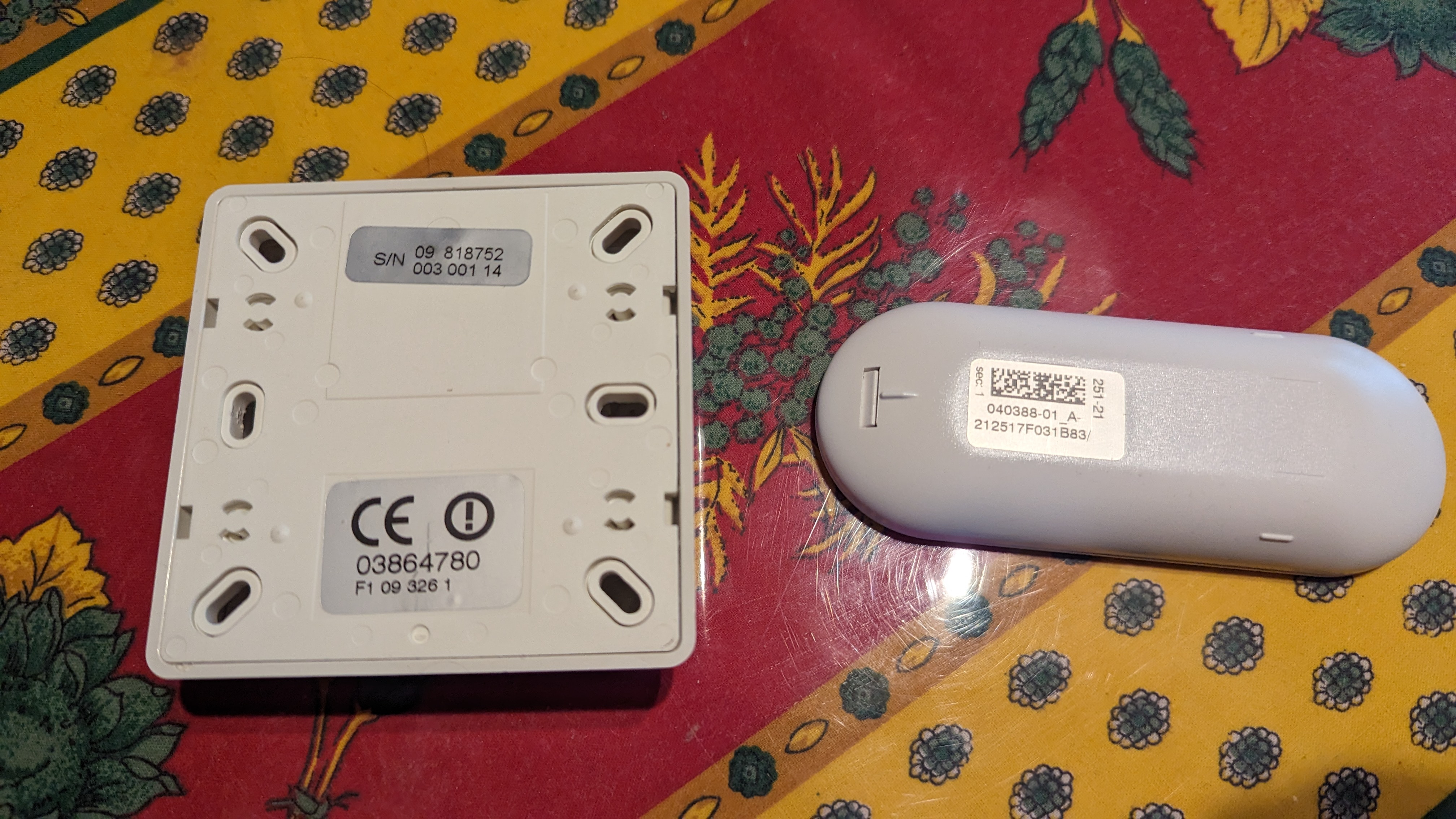 La télécommande de gauche est celle de l'ancien moteur remplacé, celle de droite correspond au nouveau moteur installé.