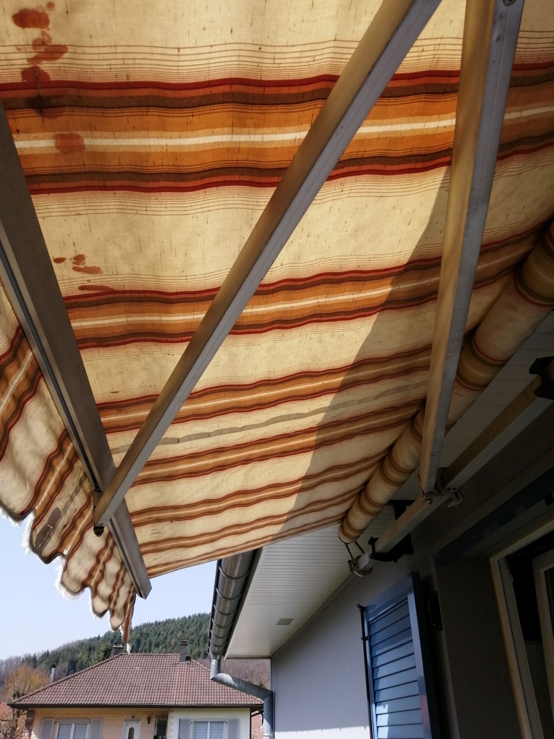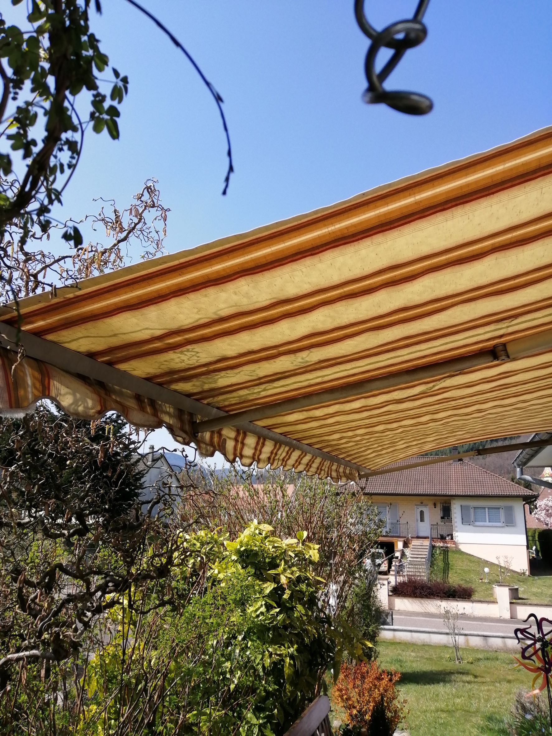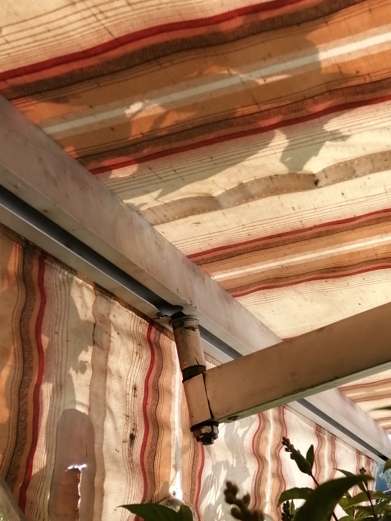 Bon c'est vrai , la toile est bien défraichie, je vais voir si je peux aussi la changer moi même, mais pour l'instant avec le retour du soleil, il nous protège et c'est l'essentiel.