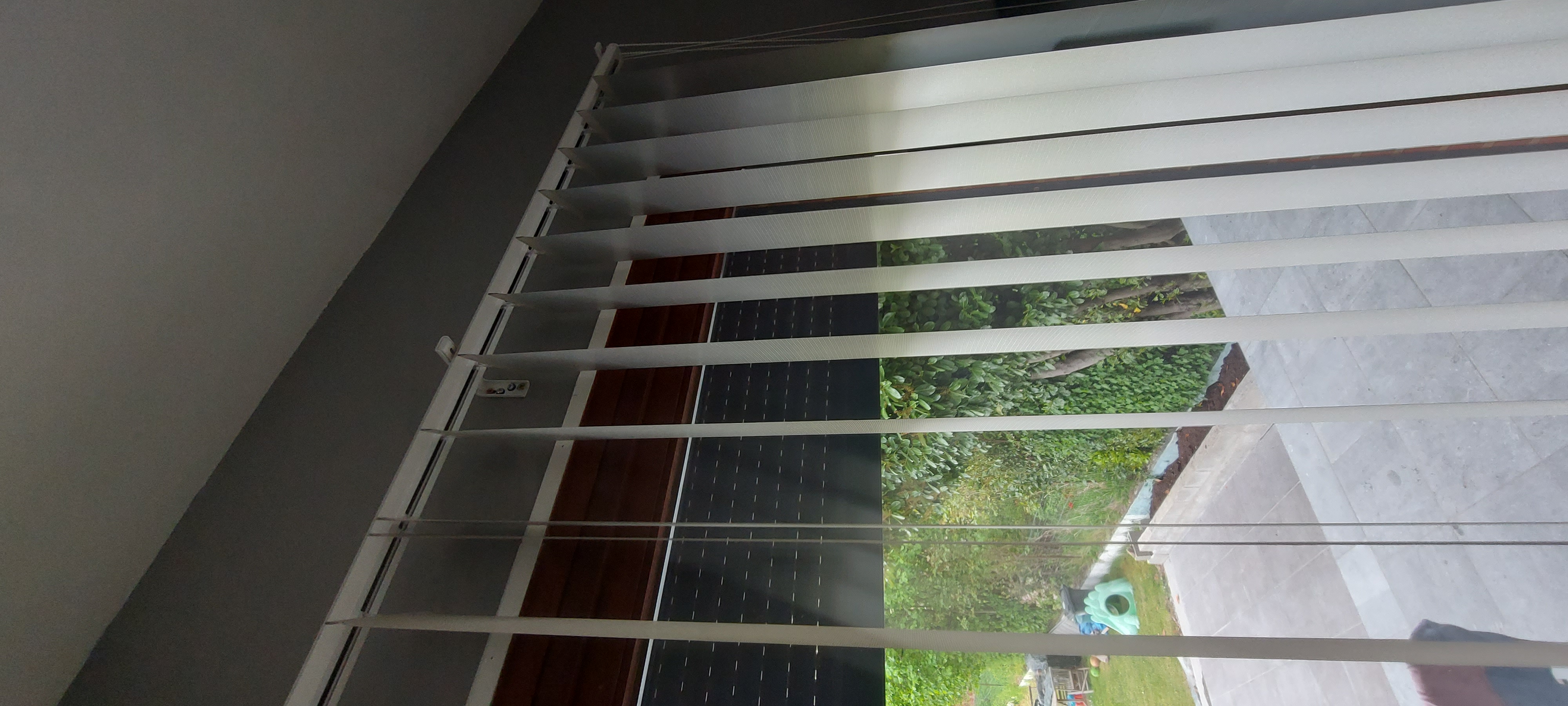 Lorsque nous avons fait glissé les lamelles avec le cordon à cet effet pour nous protéger du soleil, une des lamelles ne s'est pas mise comme les autres avec l'écart qu'il est censé y avoir entre chacune d'entre elle et pas moyen de la bouger pourtant elle tourne lorsque l'on veut qu'elle pivote sur elle même et se rabat lorsqu'on ouvre complètement le store mais garde cette malgré tout un espace anormal.