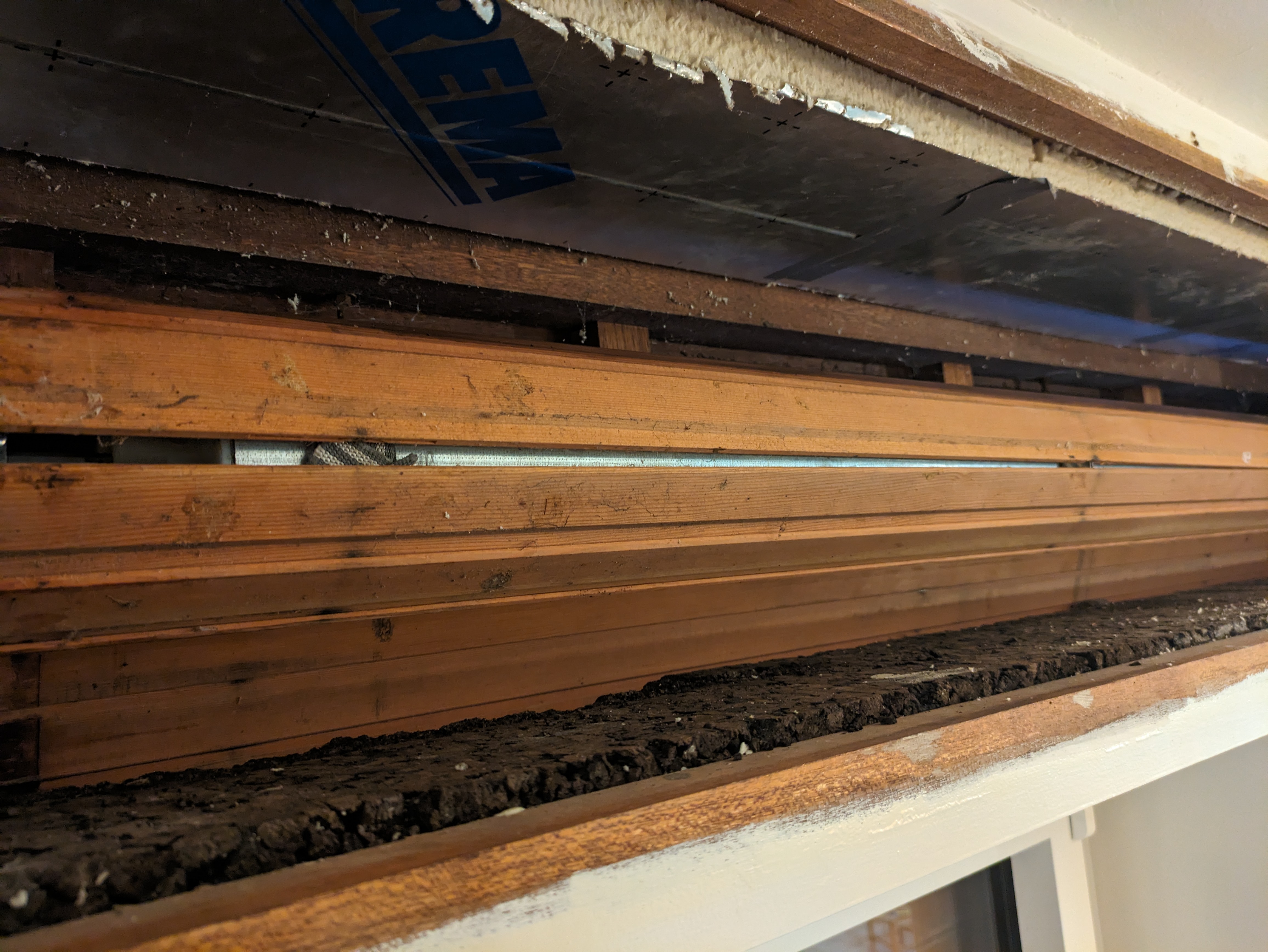 J'ai des volets roulants en bois, et entre deux lames, il y a une agrafe cassée. Les volets fonctionnent toujours, mais nous craignons qu'avec le temps, le poids supplémentaire supporté par les agrafes restantes ne finisse par les casser également. Les lames en question sont visibles seulement en ouvrant le coffret car elles sont près de l'axe.