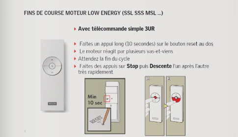 Pour refaire la procédure de recherche automatique des fins de course (haut et bas), il suffit de suivre attentivement la procédure décrite dans la documentation officielle provenant de Vélux (partie Astuces en cas de dysfonctionnement).
